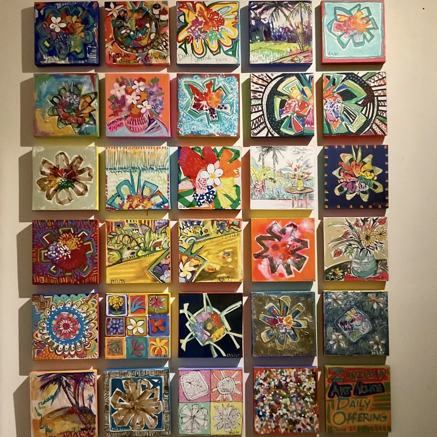 To mark the occasion I set myself a challenge I’d been dreaming of for years: to start and finish a painting every day for a month. I called the series Daily Offerings, inspired by the offerings placed in our home and garden each day here in Bali to promote harmony and blessings.
